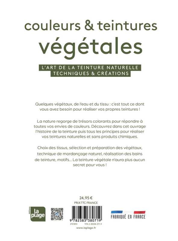 La nature regorge de trésors colorants pour répondre à toutes vos envies de couleurs. Découvrez dans cet ouvrage l’histoire de la teinture puis tous les principes pour réaliser vos teintures naturelles et sans produits chimiques.