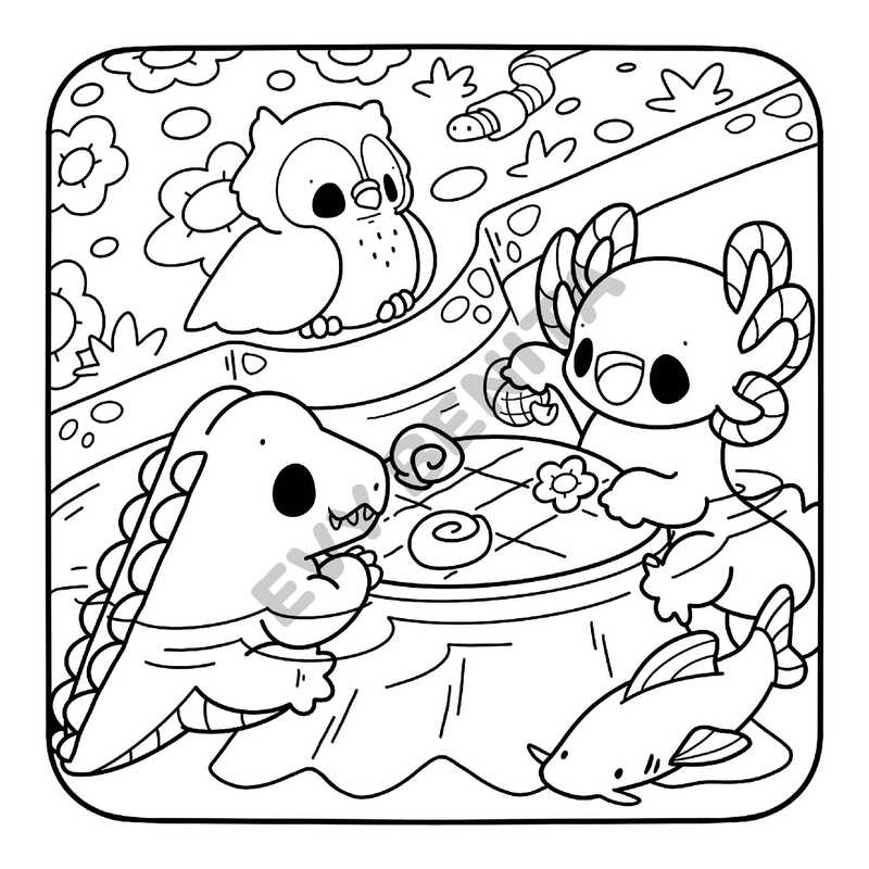 Sur votre chemin, vous croiserez des loutres profitant d’une sieste, un axolotl jouant au morpion, une grenouille dansant sous la pluie et bien d’autres animaux adorables ! Alors choisissez vos plus belles couleurs et apportez de la vie à cet univers 100 % cozy !