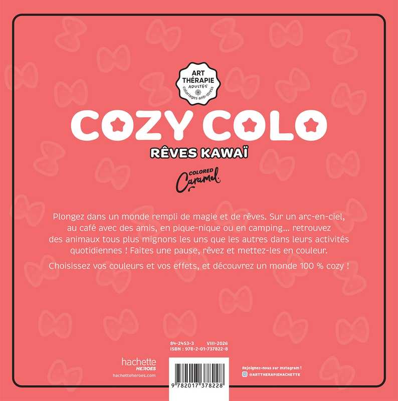Plongez dans un monde rempli de magie et de rêves. Sur un arc-en-ciel, au café avec des amis en pique-nique ou en camping... retrouvez des animaux tous les plus mignons les uns que les autres dans leurs activités quotidiennes ! Faites une pause, rêvez et mettez-les en couleur.