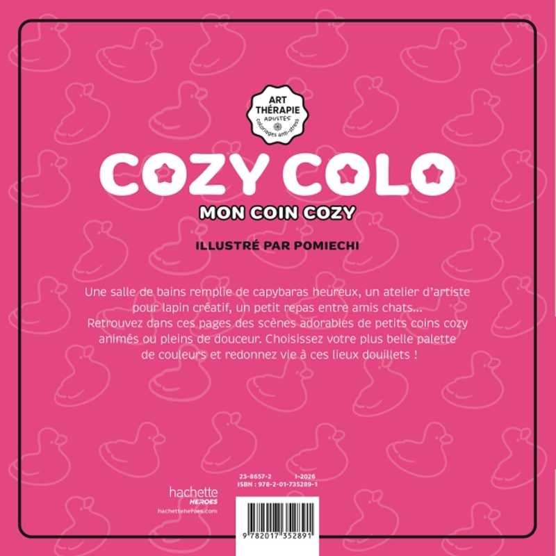 Une salle de bain pleine de capybaras heureux, un atelier d'artiste pour lapin créatif, un petit repas entre amis chats ? Retrouvez dans ces pages des scènes adorables de petits coins cozy plein d'animation ou de douceur. Choisissez votre plus belle palette de couleur et redonnez vie à ces lieux douillets !