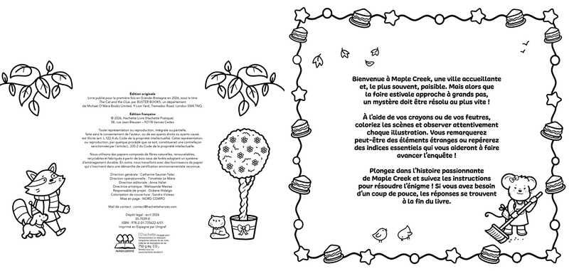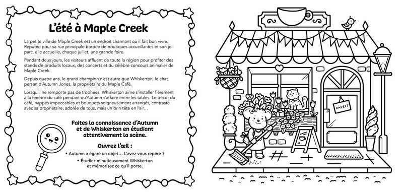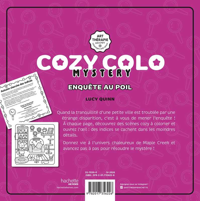 Quand la tranquillité d’une petite ville est troublée par une étrange disparition, c’est à vous de mener l’enquête ! À chaque page, découvrez des scènes cozy à colorier et