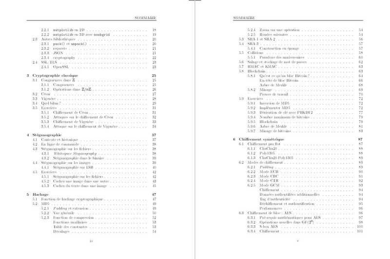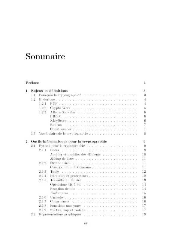 - un cours complet sur les principaux algorithmes de cryptographie, depuis le contexte historique de leur création jusqu'aux notions mathématiques indispensables à leur compréhension ;