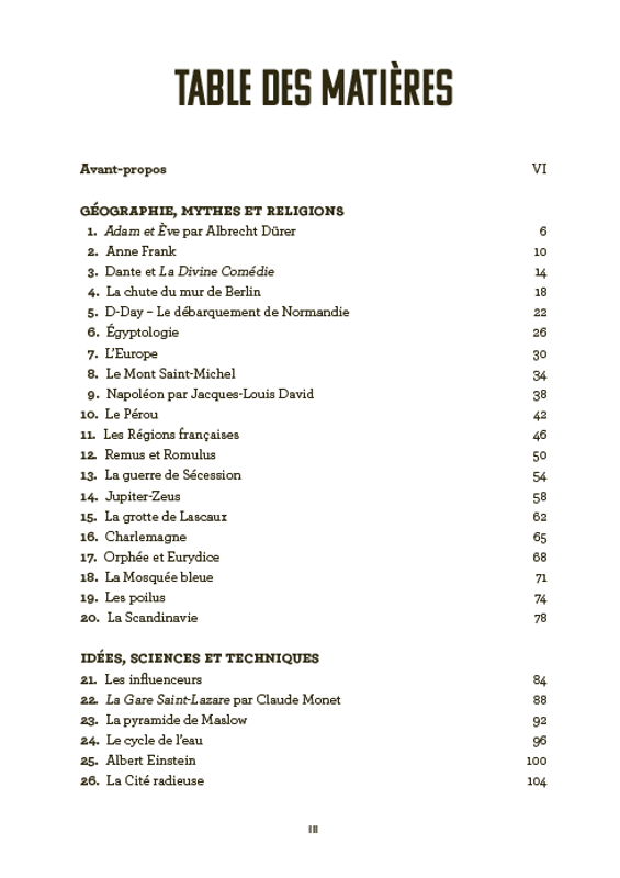 Ces 80 images sont autant de portes d’entrée pour développer vos connaissances et perfectionner votre capacité à mettre vos savoirs en réseau. Dresser des ponts entre l’histoire et l’actualité, entre la musique et la politique, entre la technologie et la société, entre l’architecture et la géographie, entre les mythes et l’art vous permettra d’appréhender le monde contemporain et sera la clé de votre succès aux concours et aux examens.