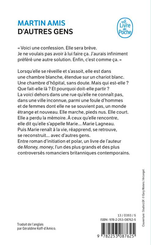 Lorsqu’elle se réveille et s’assoit, elle est dans une chambre blanche, étendue sur un chariot blanc. Une chambre d’hôpital sans doute. Mais qui est-elle ? Pourquoi est-elle là ? Et pourquoi doit-elle partir ? La voici dehors dans une rue qu’elle ne connaît pas, dans une ville inconnue, parmi une foule d’hommes et de femmes dont elle ne se souvient pas, un monde étrange et nouveau. Elle marche, pieds nus. Elle court. Elle a perdu la mémoire. A ceux qu’elle rencontre, elle dit qu’elle s’appelle Marie… Marie Lagneau. Puis Marie renaît à la vie, réapprend, se retrouve, se reconstruit… avec d’autres gens. Entre roman d’initiation et polar, un livre de l’auteur de Money, money, l’un des plus grands et des plus controversés romanciers britanniques contemporains.