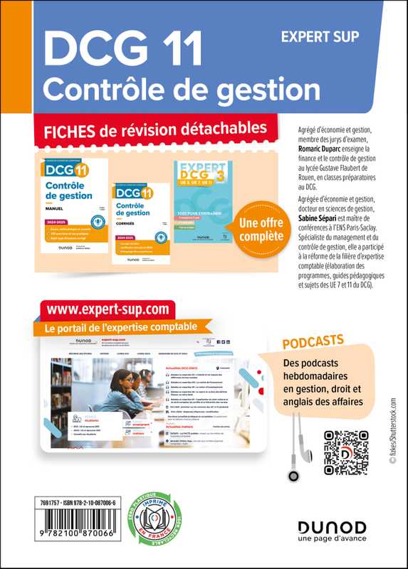 100 % conformes au programme de DCG/DSCG et aux guides pédagogiques, les fiches de révision Dunod sont détachables pour des utilisations variées (glissées dans le manuel, en complément du cours du professeur, à emporter partout…).