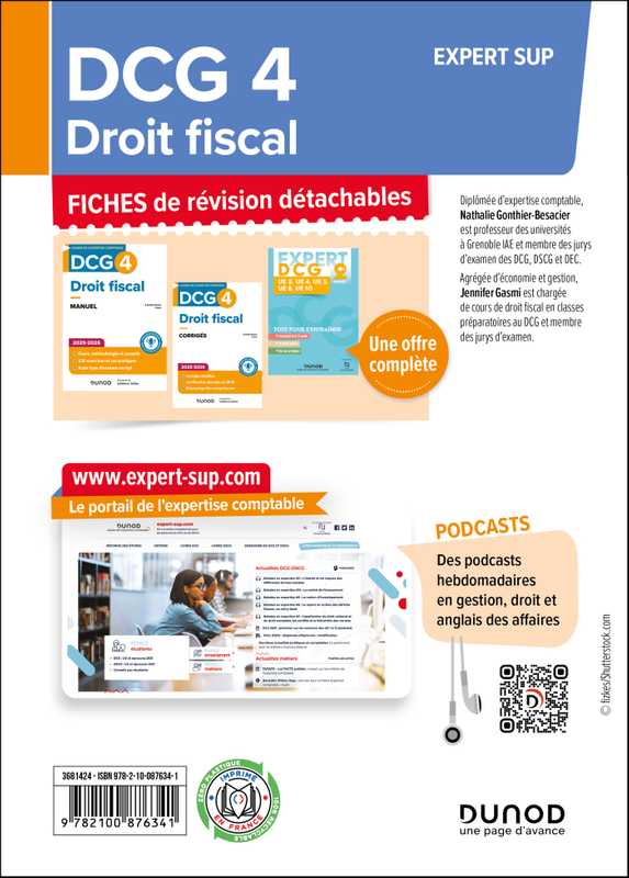 100  % conformes au programme de DCG et aux guides pédagogiques, les fiches de révision Dunod sont détachables pour des utilisations variées (glissées dans le manuel, en complément du cours du professeur, à emporter partout…).
