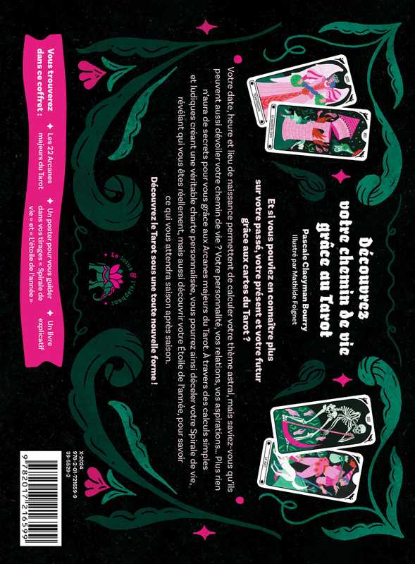 Votre date, heure et lieu de naissance permettent de calculer votre thème astral, mais saviez-vous qu’ils peuvent aussi dévoiler votre chemin de vie ? Votre personnalité, vos relations, vos aspirations… Plus rien n’aura de secrets pour vous grâce aux Arcanes majeurs du Tarot. À travers des calculs simples et ludiques créant une véritable charte personnalisée, vous pourrez ainsi déceler votre Spirale de vie, révélant qui vous êtes réellement, mais aussi découvrir votre Étoile de l’année, pour savoir ce qui vous attendra saison après saison.