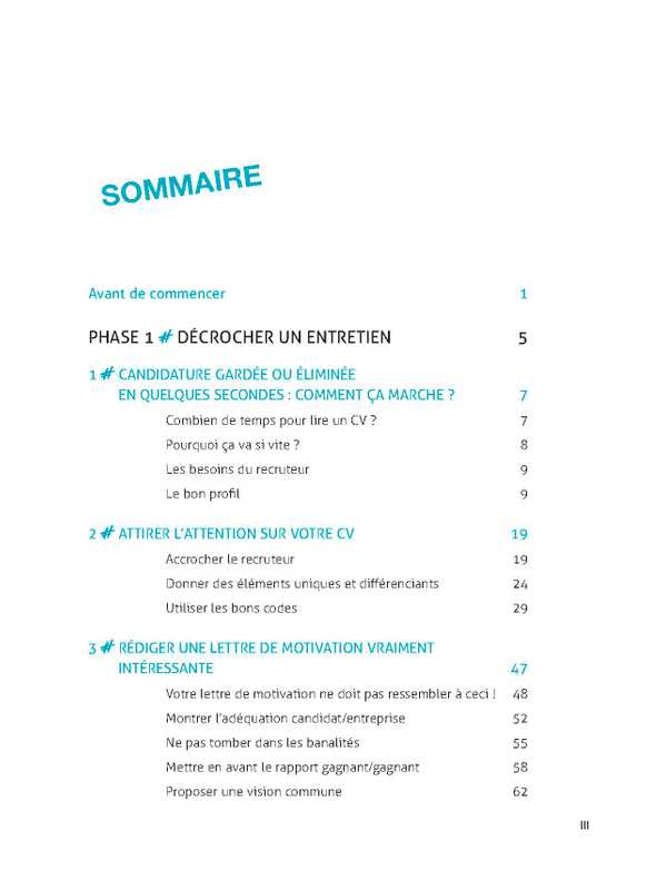 Pour utiliser facilement et rapidement toutes ces astuces, des visuels très pratiques rythmeront votre lecture : exemples de CV, de lettres de motivation, analyse d’une offre d’emploi, exercices…