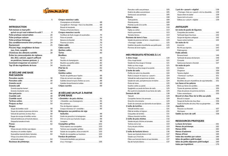 Vous trouverez en "Dépenser moins, Manger mieux" un véritable guide pour vous aider à gérer votre budget alimentaire et à cuisiner sainement des recettes végétales et bio chaque jour grâce à :