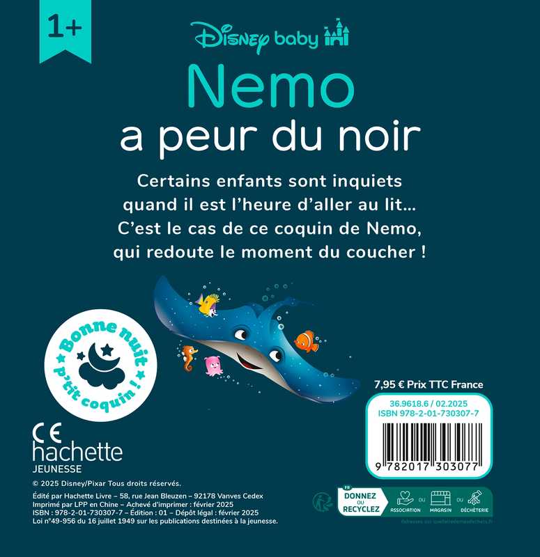 L’histoire : Certains enfants sont inquiets quand il est l’heure d’aller au lit... C’est le cas de ce coquin de Nemo, qui redoute le moment du coucher !