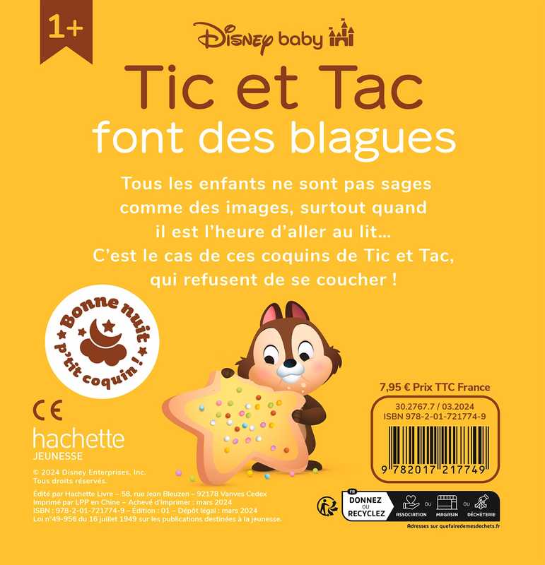 L’histoire : Tous les enfants ne sont pas sages comme des images, surtout quand il est l’heure d’aller au lit. C’est le cas de ces coquins de Tic et Tac, qui refusent de se coucher ! Ils préfèrent jouer encore un peu et faire des blagues à leurs amis...