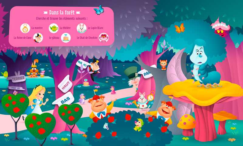- Des illustrations avec, sur chaque scène, un encadré avec une miniature de l’élément caché pour guider l’enfant dans sa recherche ;