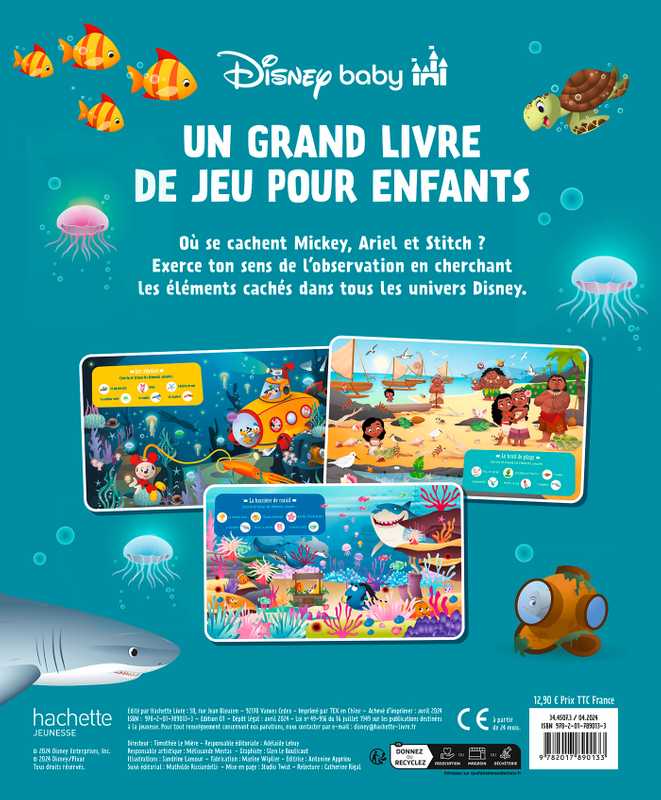 - 9 scènes thématiques pour découvrir la mer avec tous les personnages emblématiques des films Disney ;