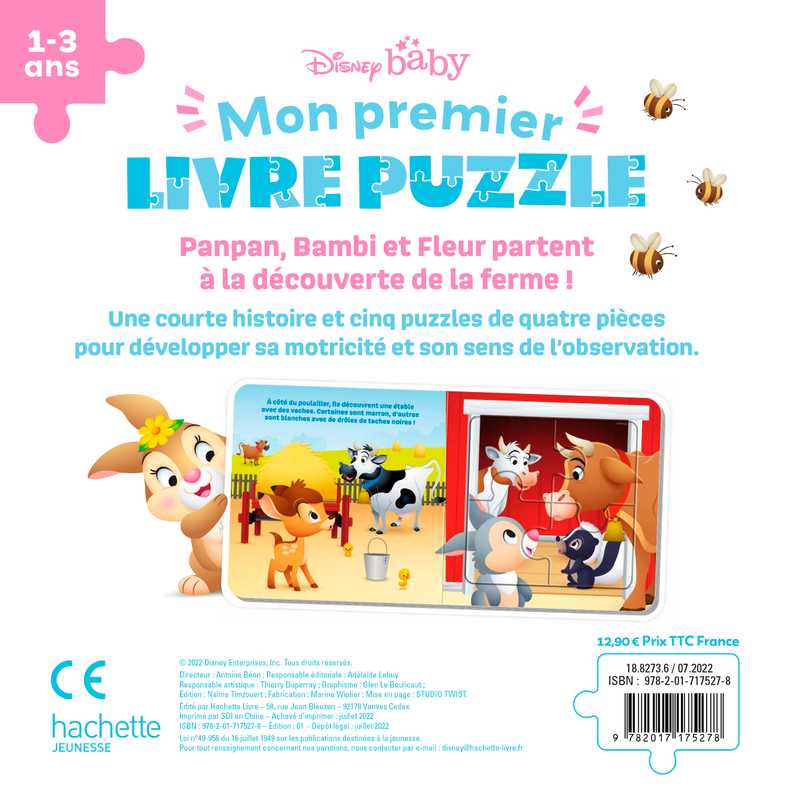 Sur chaque page de droite, un puzzle de quatre pièces pour développer la motricité et le sens de l’observation de votre enfant.