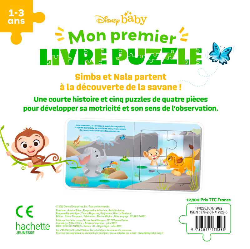 Sur chaque page de droite, un puzzle de quatre pièces pour développer la motricité et le sens de l’observation de votre enfant.