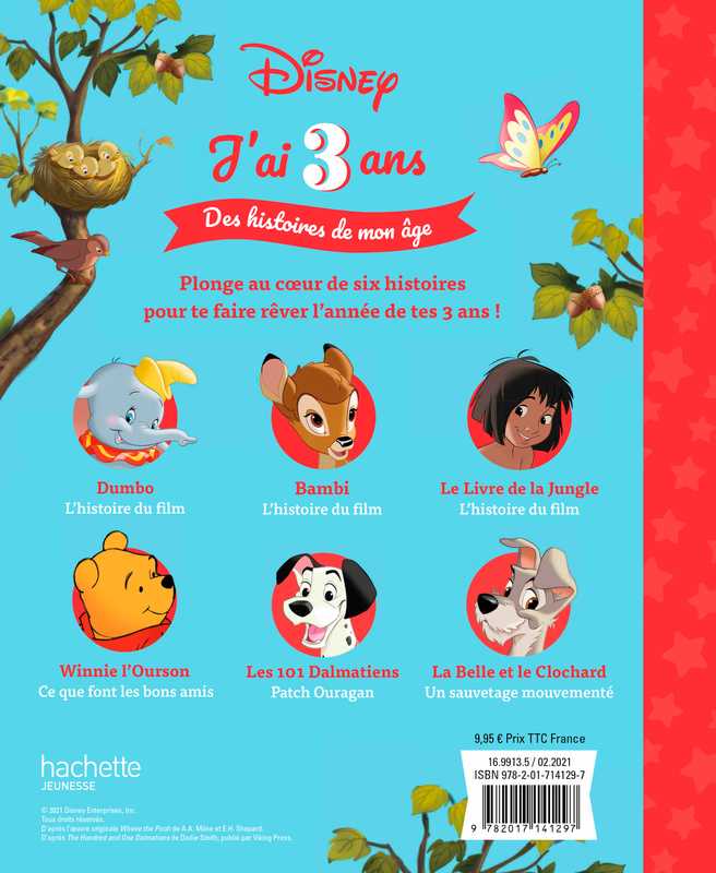 Contient les histoires : Dumbo - L’histoire du film, Bambi – L’histoire du film, Le Livre de la Jungle – L’histoire du film, Winnie l’Ourson – Ce que font les bons amis, Les 101 Dalmatiens – Patch Ouragan, La Belle et le Clochard – Un sauvetage mouvementé