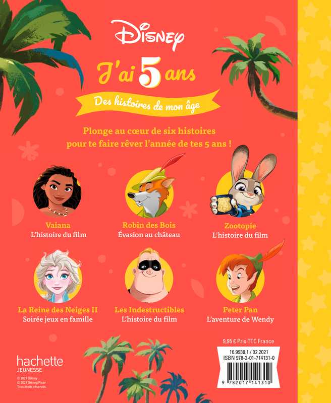 Contient les histoires : Vaiana - L’histoire du film, Robin des Bois - Évasion au château, Zootopie - L’histoire du film, La Reine des Neiges II - Soirée jeux en famille, Les Indestructibles - L’histoire du film, Peter Pan - L’aventure de Wendy