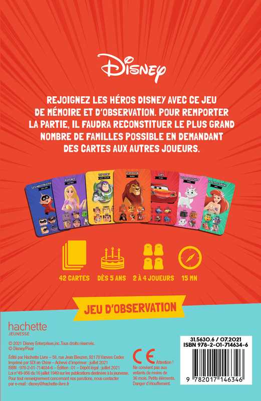 Le jeu : un jeu de sept familles dans lequel il faut reconstituer les plus célèbres familles des grands classiques Disney.