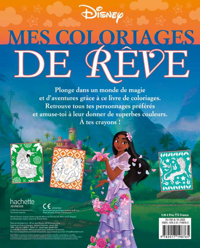 - Un cahier grand format de 32 pages qui propose des coloriages en noir et blanc accompagnés d'éléments en couleurs.