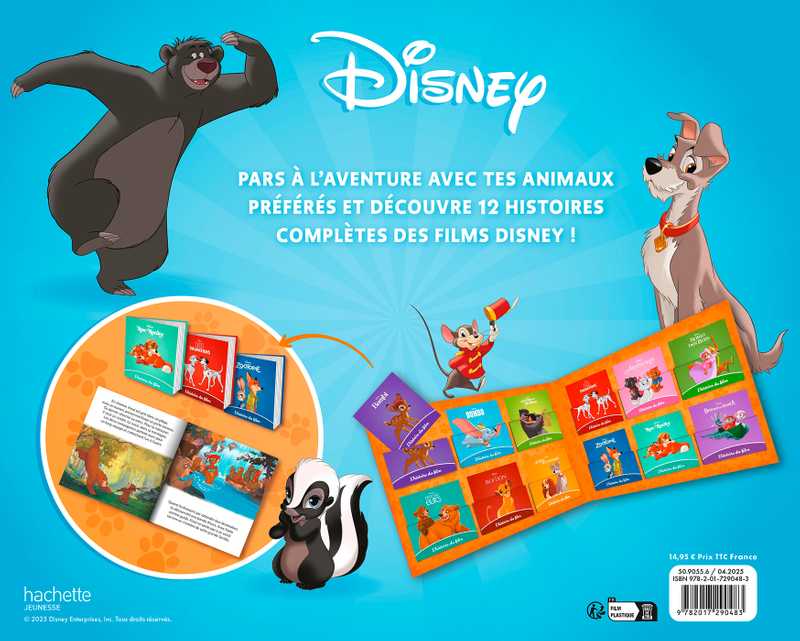 Contient les histoires des films : Bambi ; Dumbo ; Le Roi Lion ; Frère des Ours ; La Belle et le Clochard ; Le Livre de la Jungle ; Les 101 Dalmatiens ; Les Aristochats ; Bernard et Bianca ; Robin des Bois ; Rox et Rouky ; Zootopie.