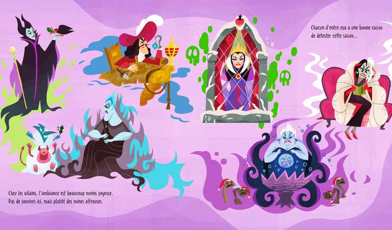 Comme toi, les héros Disney attendent Noël avec impatience et célèbrent ce jour en compagnie de leurs familles et de leurs amis. Mais qu’en est-il des vilains, qui ont horreur du bonheur ? Maléfique, Hadès, Ursula, le Capitaine Crochet, la Méchante Reine et Cruella vont-ils réussir à semer le chaos ? Découvre-le dans ce récit inédit !