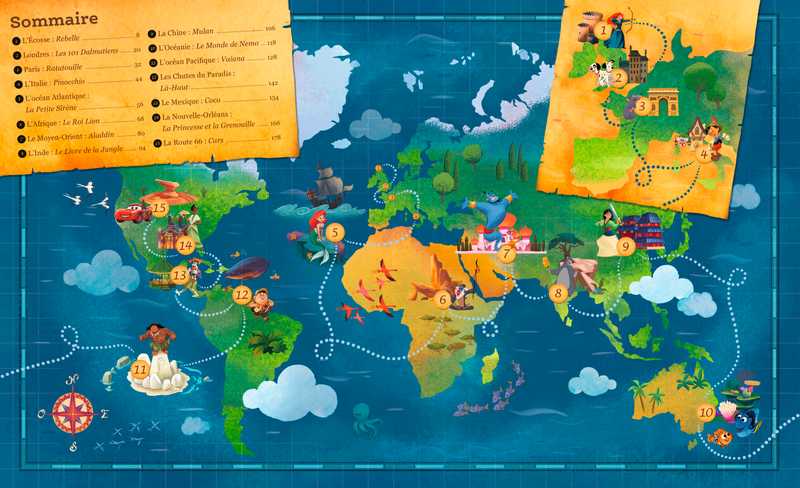 - Avant chaque histoire, une carte de l’univers illustrée avec les lieux et les personnages emblématiques du film.