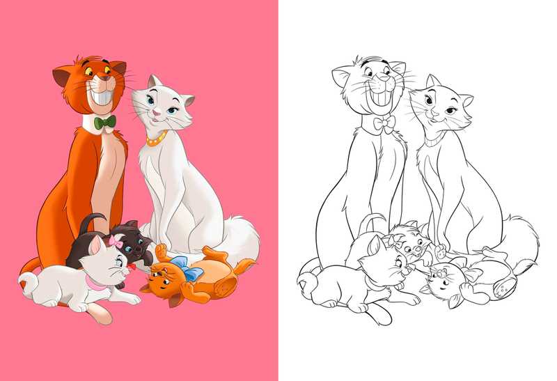– De grandes illustrations avec modèles pour colorier Stitch, Mirabel, Simba et plein d’autres personnages selon ses envies !