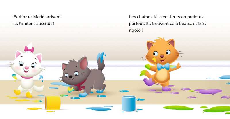 Résumé : Après une super séance de peinture, les petits chatons sont tout sales. Mais ils ne veulent pas se laver ! O’Malley va leur montrer comme le bain est rigolo.