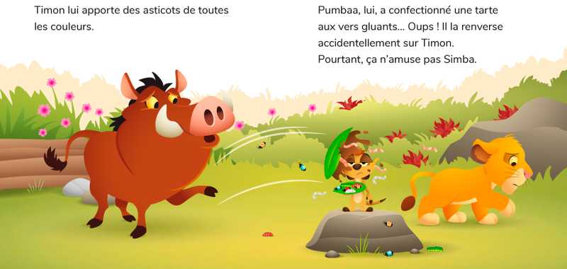– Résumé : Timon et Pumbaa font tout pour redonner le sourire à leur ami, Simba. Farces, blagues, bêtises ou grimaces, tout est possible pour faire rire !