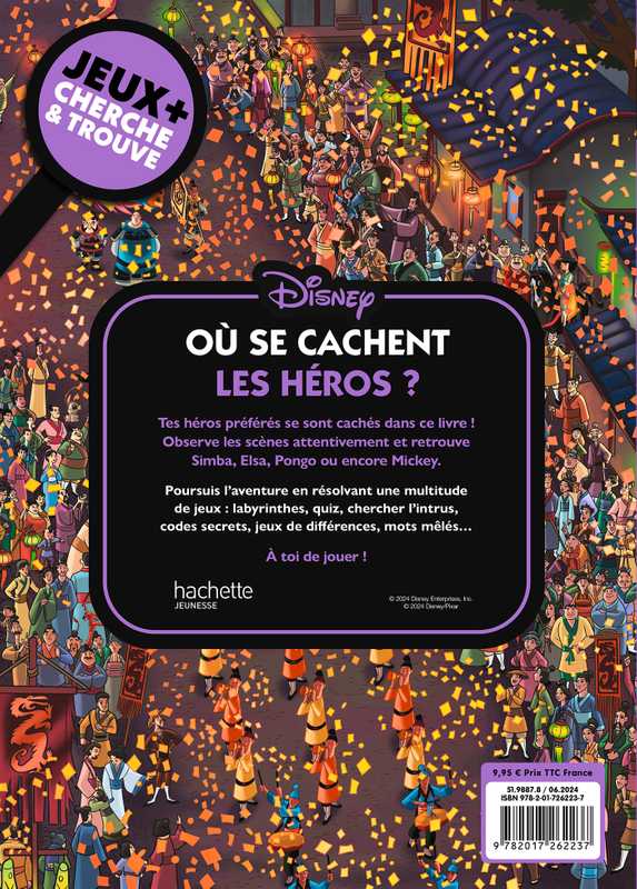 Notre collection de cherche et trouve à succès en version « jeux » ! Un cahier pour jouer à retrouver les héros et méchants Disney et Pixar, avec plein d’autres activités amusantes.