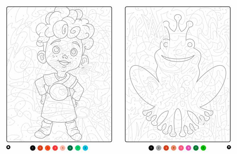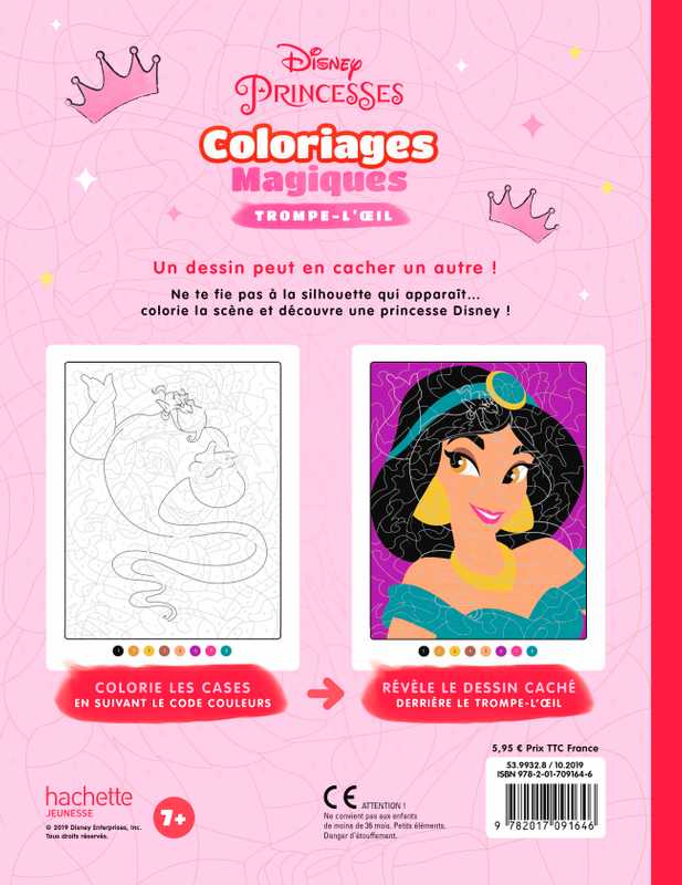 – L’enfant découvre une silhouette qui apparaît au crayon. Mais en coloriant la scène selon le code couleurs, il va découvrir une autre princesse !