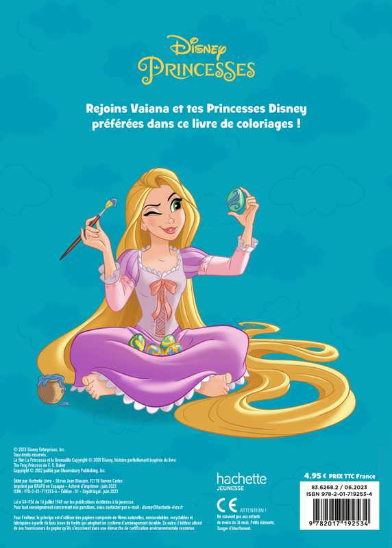 – Un cahier de 32 coloriages avec des illustrations consacrées aux princesses de Disney, à coloriser selon ses envies.