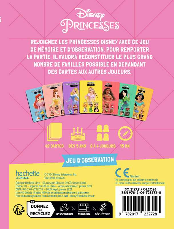 Le jeu : un jeu de sept familles dans lequel il faut reconstituer les plus célèbres familles des Princesses Disney.