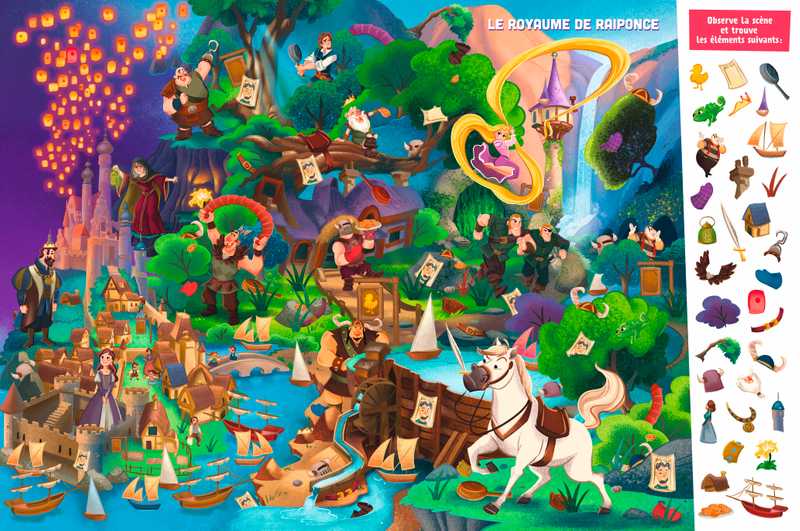 - 8 scènes issues des univers Disney Princesses pour s’amuser avec Vaina, Raiponce, Belle, et plein d’autres personnages !