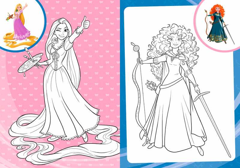Des coloriages en noir et blanc avec modèle couleur et une planche de stickers autour des Princesses Disney.