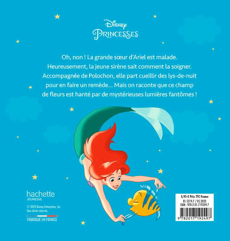 L'histoire : Oh, non ! La grande sœur d’Ariel est malade. Heureusement, la jeune sirène sait comment la soigner. Accompagnée de Polochon, elle part cueillir deslus-de-nuit pour en faire un remède... Mais on raconte que ce champ de fleurs est hanté par de mystérieuses lumières fantômes !