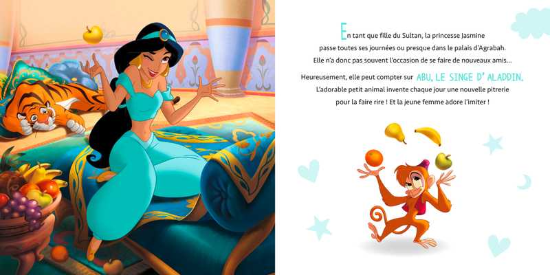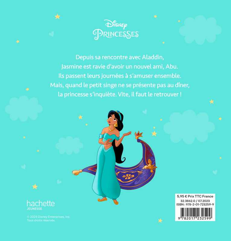 L'histoire : Depuis sa rencontre avec Aladdin, Jasmine est ravie d’avoir un nouvel ami, Abu. Ils passent leurs journées à s’amuser ensemble. Mais, quand le petit singe ne se présente pas au dîner, la princesse s’inquiète. Vite, il faut le retrouver !