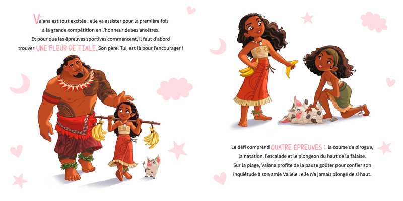 L'histoire : Sur l’île de Motunui, une compétition va avoir lieu. La petite Vaiana et son amie Vailele ont hâte d’y participer ! Ensemble, elles s'entraînent au plongeon et à l'escalade, solidaires pour dépasser leurs peurs...