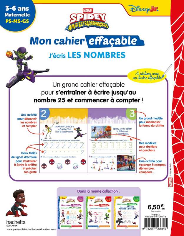 Disney - Spidey et ses amis extraordinaires - Mon cahier effaçable - J'écris les nombres (3-6 ans)