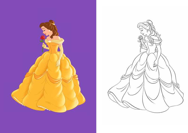 • Sur chaque double page, une grande illustration à colorier et en regard son modèle en couleurs.