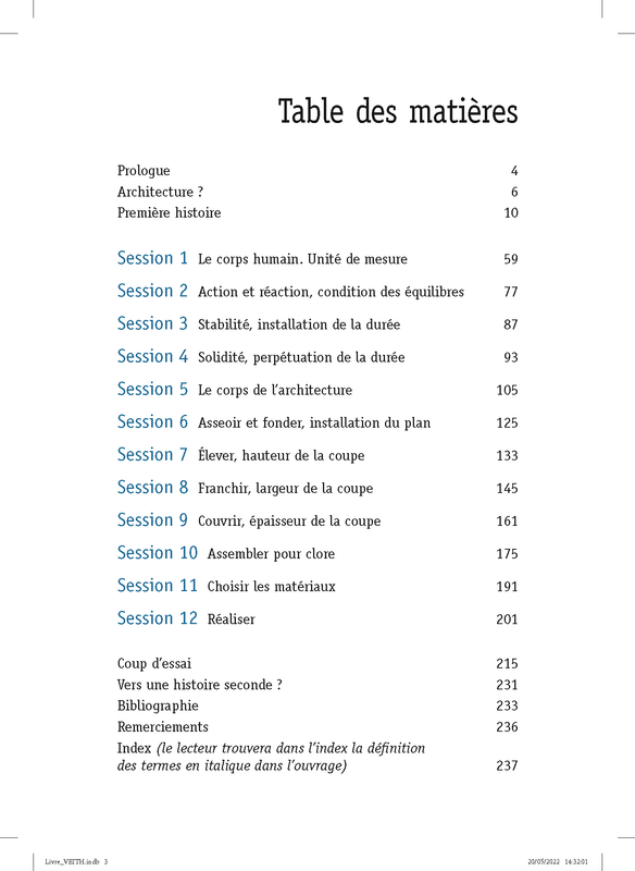 Issu de quarante années d’expérimentation pédagogique et de projets réalisés, cet ouvrage de « culture constructive » explique en douze sessions richement illustrées quelques-unes des lois fondatrices ordonnançant la construction et synthétise les connaissances essentielles à tout projet architectural accompli. Ce manuel d’initiation ouvre aussi à une vie professionnelle consciente des enjeux climatiques dans lequel le métier d’architecte – avec bien d’autres – garde une part active.