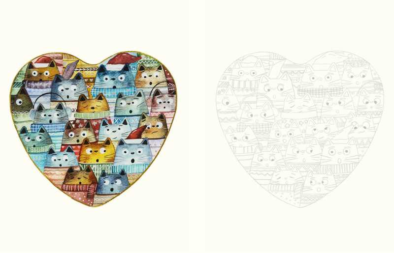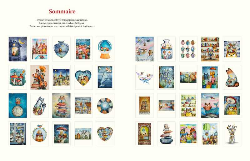 Étonnés, joyeux, maladroits, rêveurs… les chats à l’aquarelle de Julia Dávila-Lampe nous ouvrent la porte d’un univers éblouissant de couleurs. Sous son pinceau, les dégradés de bleu s’illuminent d’or, les villages ressemblent à des maisons de pain d’épice et la magie n’est jamais bien loin !