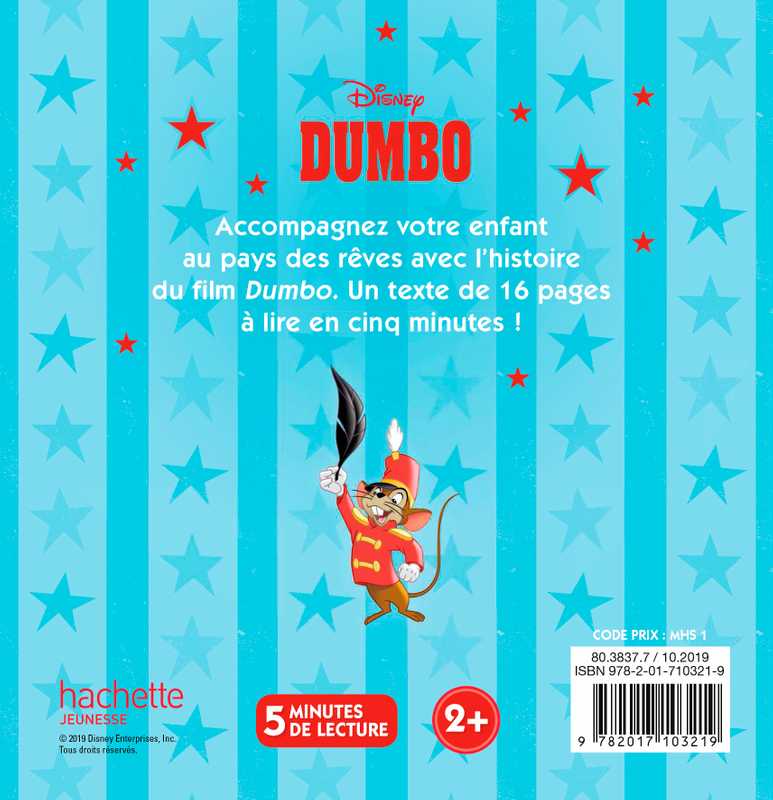 Dans cet ouvrage de 16 pages richement illustré, aux textes courts, faciles et rapides à lire, découvrez l’histoire du film Dumbo. Un texte adapté aux plus petits pour un temps de lecture de 5 minutes.