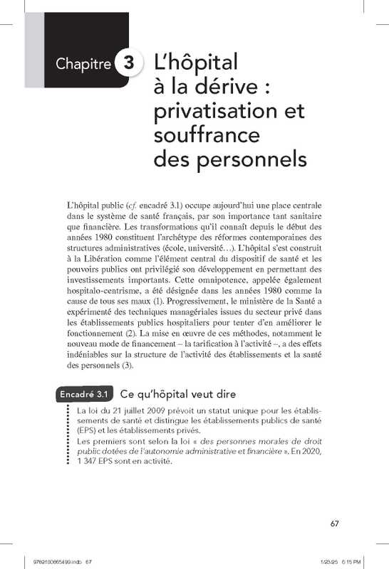 Ce manuel s’organise autour d’une logique thématique qui permet de présenter les grands objets de santé : l’hôpital, la médecine de ville, l’industrie pharmaceutique, les assurances privées, mais aussi la financiarisation des soins, la quantification de l’activité de soin, les inégalités et les rapports entre santé et capitalisme.