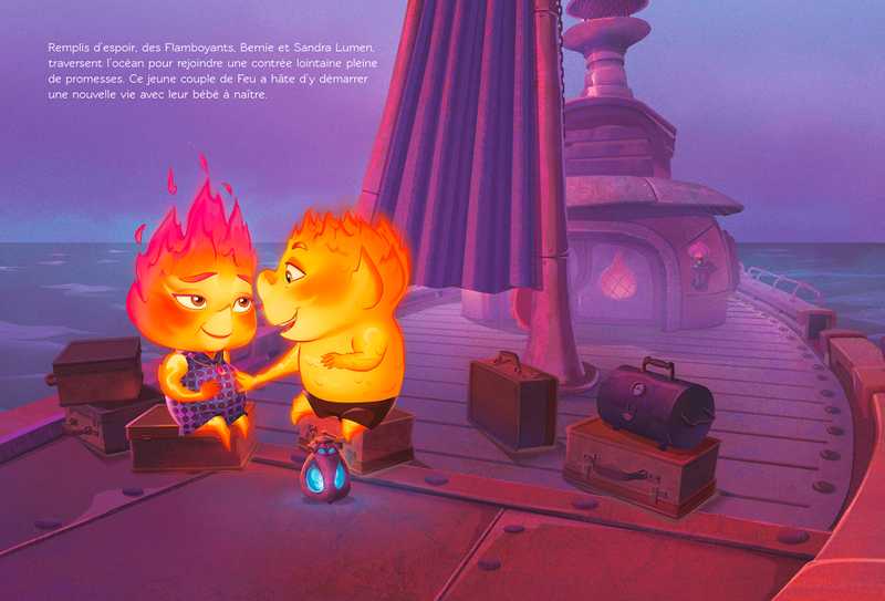 Résumé : À Element City, les quatre Éléments vivent en harmonie. Un jour, Flam, une Flamboyante au caractère explosif, s’énerve et provoque une inondation dans la boutique de son père… C’est alors que Flack, un Aquatique, apparaît. Ensemble, ils se lancent dans une course contre la montre pour sauver le magasin. Mais le Feu et l’Eau peuvent-ils marcher main dans la main ?