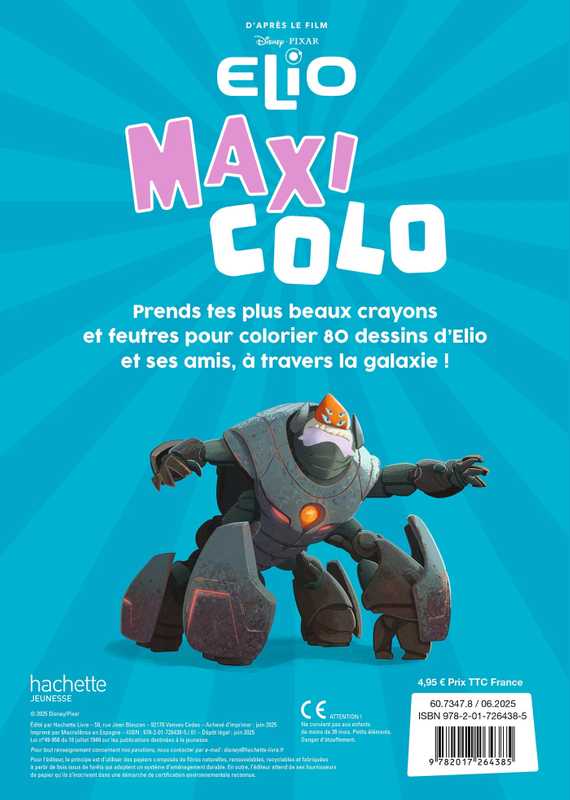 Un cahier de 80 coloriages en noir et blanc des personnages du nouveau film des studios Pixar : Elio !