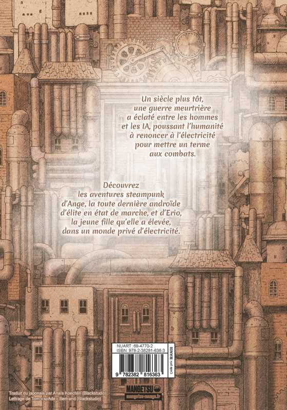 Découvrez les aventures steampunk d'Ange, la toute dernière androïde d'élite en état de marche, et d'Erio, la jeune fille qu'elle a élevée, dans un monde désormais privé d'électricité.