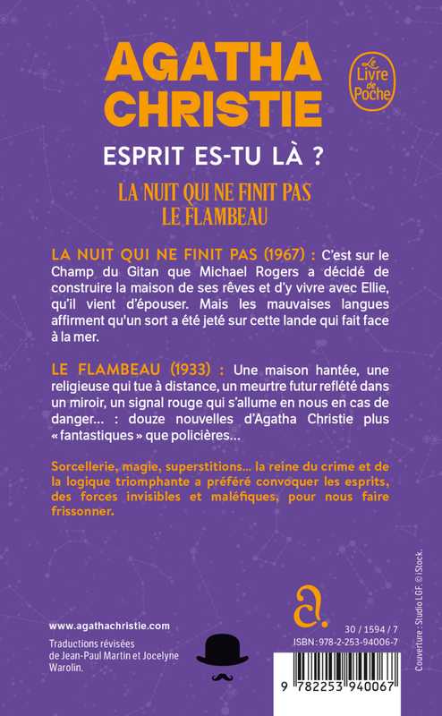 La nuit qui ne finit pas (1967) : C’est sur le « Champ du gitan » que Michael Rogers a décidé de construire la maison de ses rêves et d’y vivre avec Ellie, l’amour de sa vie, qu’il vient d’épouser. Mais les mauvaises langues affirment que des romanichels ont jeté un sort sur cette lande qui fait face à la mer. Sorcellerie, magie, superstitions… la reine du crime et de la logique triomphante a préféré convoquer les esprits, des forces invisibles et maléfiques, pour nous faire frissonner.
