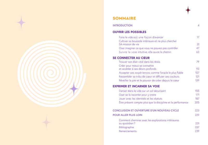 Chaque chapitre s’ouvre sur une histoire vraie pour provoquer des prises conscience et propose des pratiques accessibles, ainsi que des exercices puissants qui vous aideront à dépasser vos résistances, et ainsi inventer votre propre chemin.