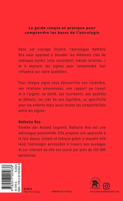 Dans cet ouvrage illustré, l’astrologue Nathalie Ros vous apprend à décoder les éléments clés du zodiaque (soleil, lune, ascendant, nœuds lunaires...) et à explorer les signes pour comprendre leur influence sur votre quotidien.